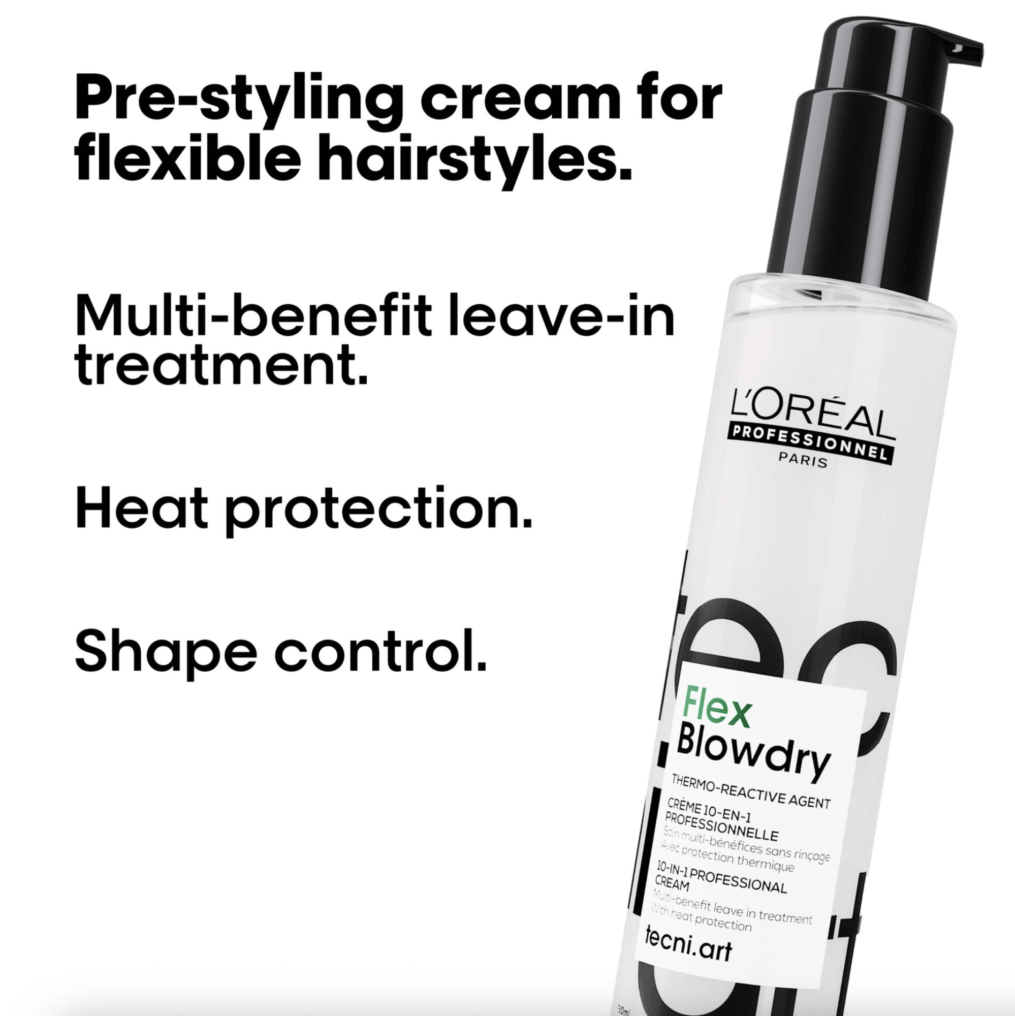 L'Oréal Professionnel tecni.art Flex Blowdry professional pre-styling blowdry cream with 10-in-1 benefits.