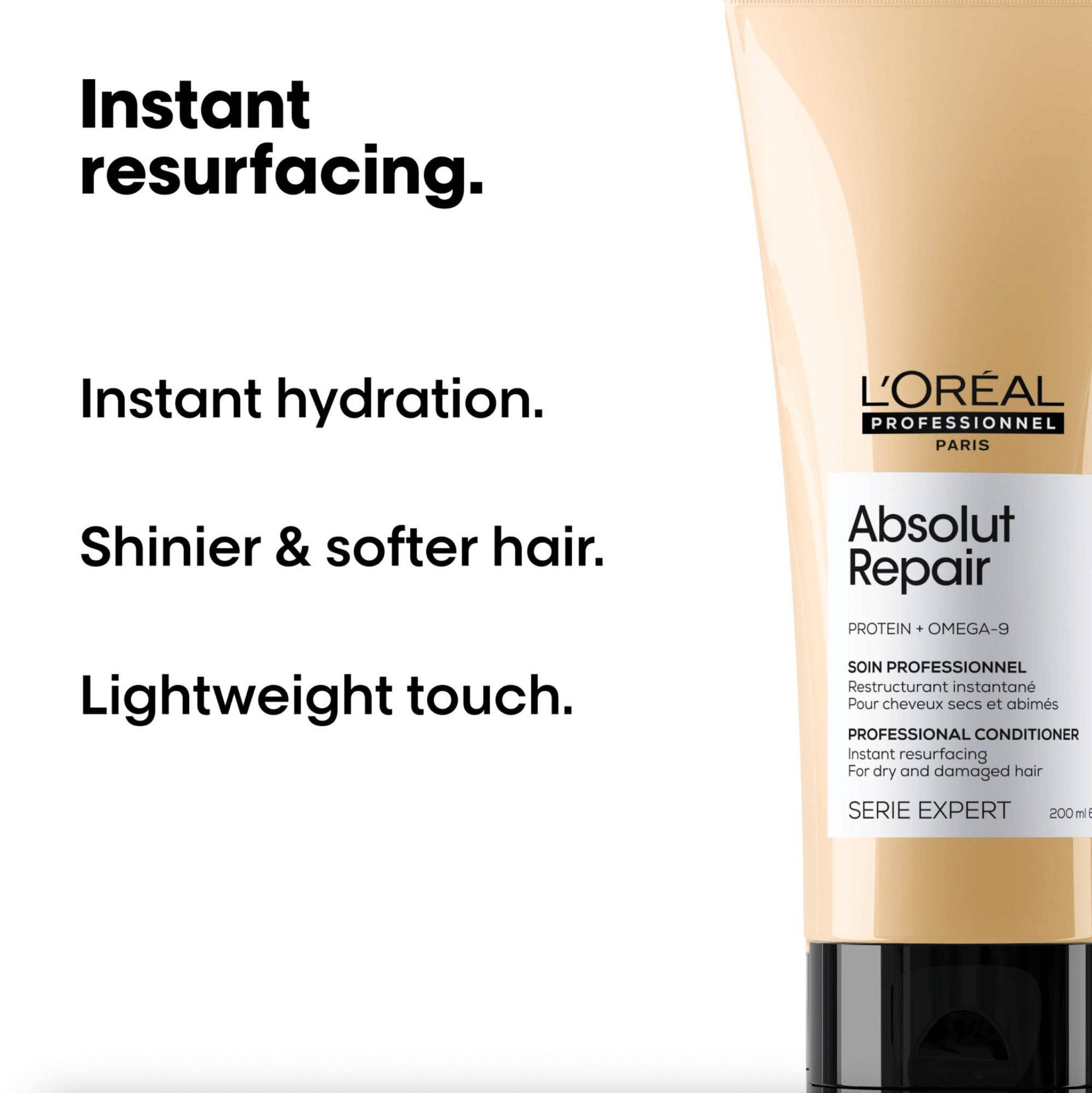 Infused with gold quinoa and protein, the professional formula of the Instant Resurfacing Conditioner is the perfect treatment to immediately restructure damaged hair. Its creamy formula nourishes the fibre while leaving it with a lightweight touch.