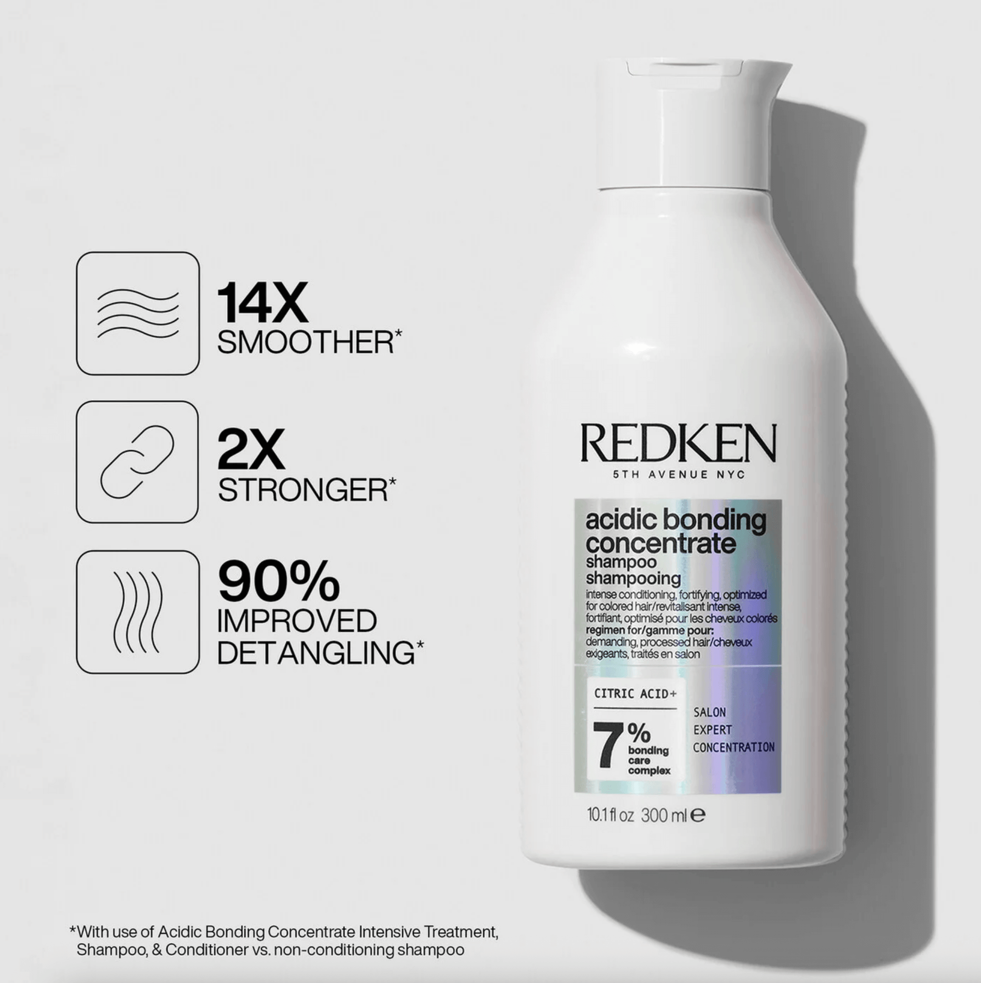 Redken Acidic Bonding Concentrate Sulfate-Free Shampoo is Redken's most concentrated all-in-one formula for strength repair for all types of damaged hair. This ultra-rich and luxurious sulfate-free shampoo provides ultimate strength repair, intense conditioning and colour fade protection.