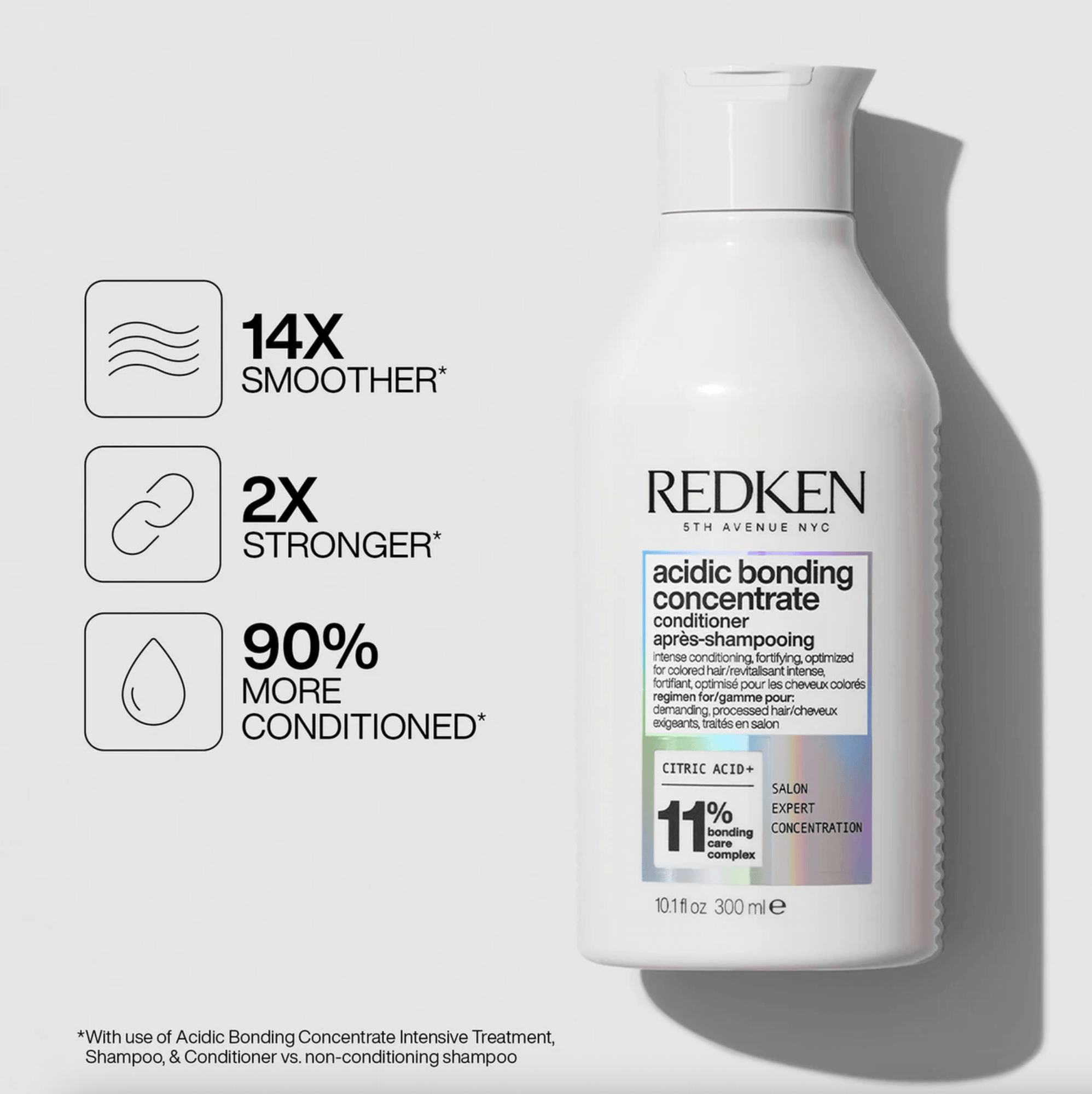 Redken Acidic Bonding Concentrate Sulfate-Free Conditioner is Redken's most concentrated all-in-one formula for strength repair for all types of damaged hair. This ultra-rich and luxurious sulfate-free conditioner provides ultimate strength repair, intense conditioning and hair colour fade protection.