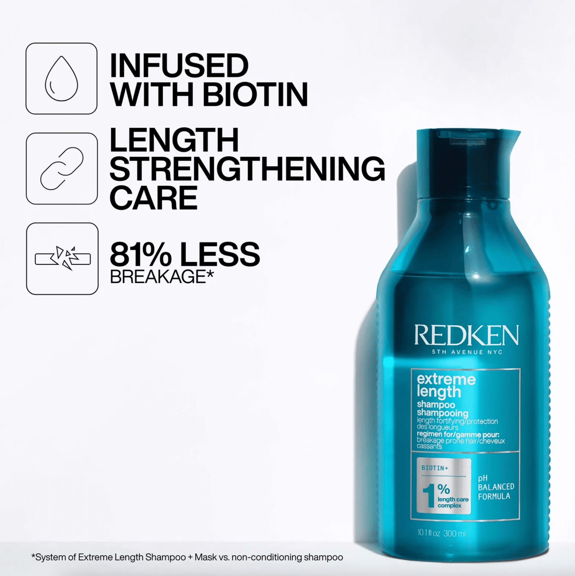 Redken Extreme Length Shampoo with Biotin & Redken's Length Care Complex helps strengthen damaged hair to grow longer and stronger. Extreme Length Shampoo helps hair growth by preventing breakage.