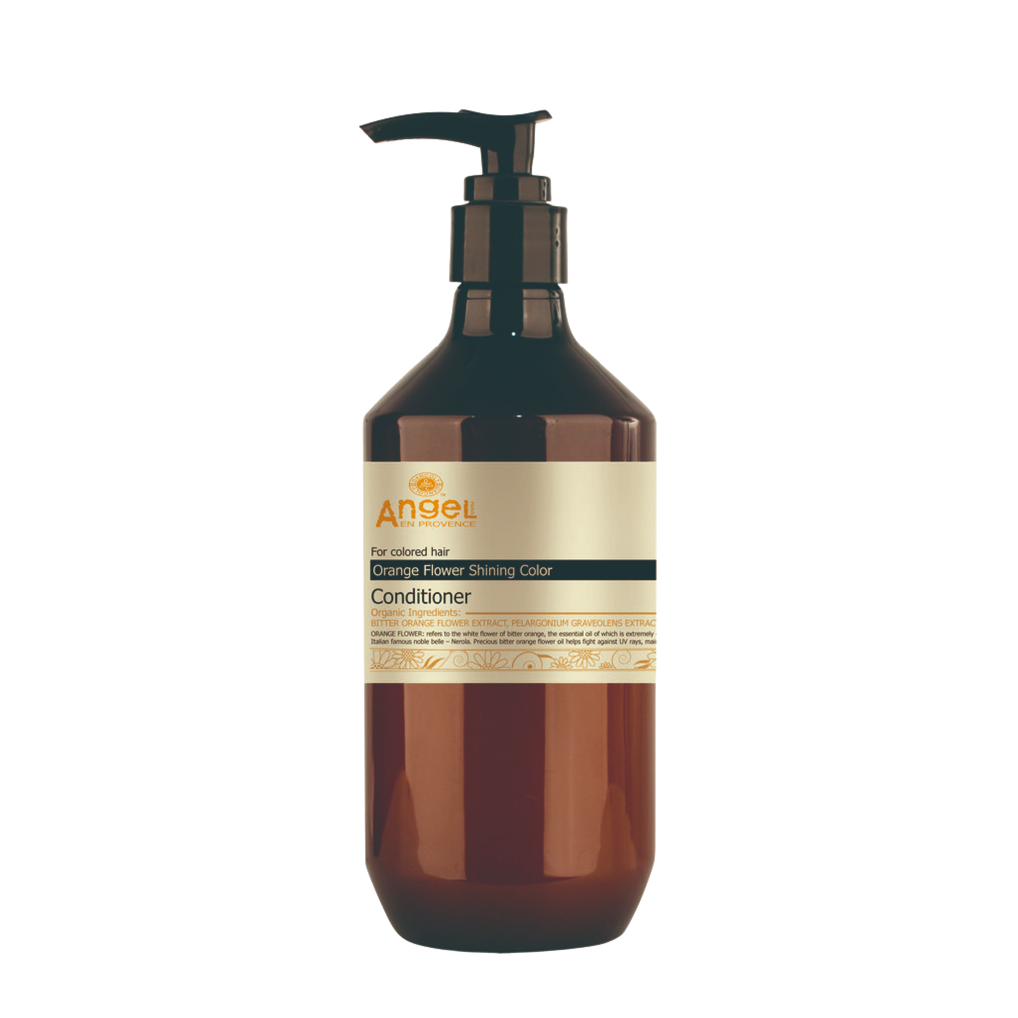 Angel En Provence Orange Flower Shining Colour Conditioner has protects hair against environmental damage, leaving hair soft and vibrant with a lustrous shine. Formulated with Bitter Orange Extract, Pelarganium Graveolens Extract and Rose Extract to protect colour from UV damage. Orange Flower prevents colour fading due to a high content of Anti Oxidants that fight free radical damage while improving condition, hydrating and smoothing the hair preventing frizz and split ends occurring. Leaves the hair soft, smooth, shiny and vibrant. Suitable for all hair types especially medium to coarse texture.Â